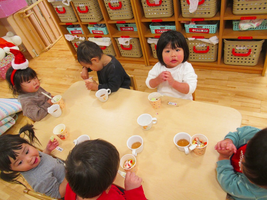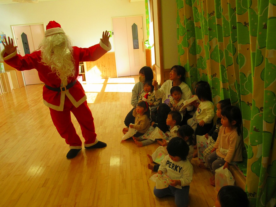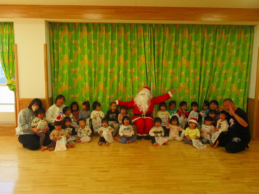 クリスマス会では、サンタさんに会えてタッチをしてもらったり、プレゼントをもらって大喜びでした。クリスマスケーキも美味しくいただきました★