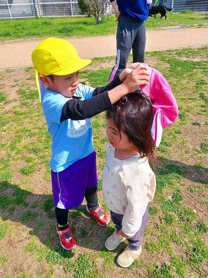 先日はうさぎ組のお友だちとお散歩に行き、一緒に遊びました。困っているお友だちを手伝ってあげられるようにもなりました♡